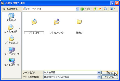 [ファイルの場所(F)]で住所録の保存場所を選択します。 | ||||||||||||||||