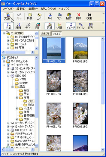 目的の画像を選択し、[文面へ]ボタンをクリックします。![]() |