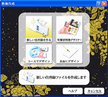 | 筆まめ Ver.14で宛名面を作成するには、初めに住所録を作成します。住所録を作成するには、次のように操作します。 | |||||||||||||||||