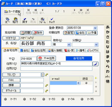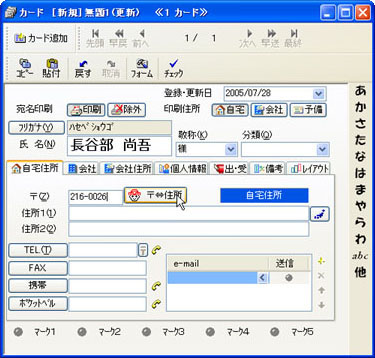 カードウィンドウの「自宅住所」タブをクリックします。 | ||||||||||||||||
