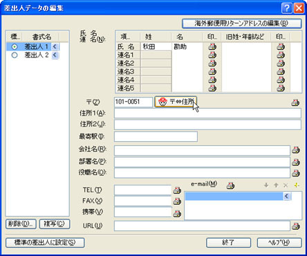 [〒(Z)]に郵便番号を入力し、[郵便番号⇔住所変換]ボタンをクリックします。![]() |