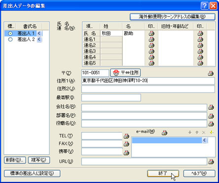 番地を入力し、[終了]ボタンをクリックします。![]() |