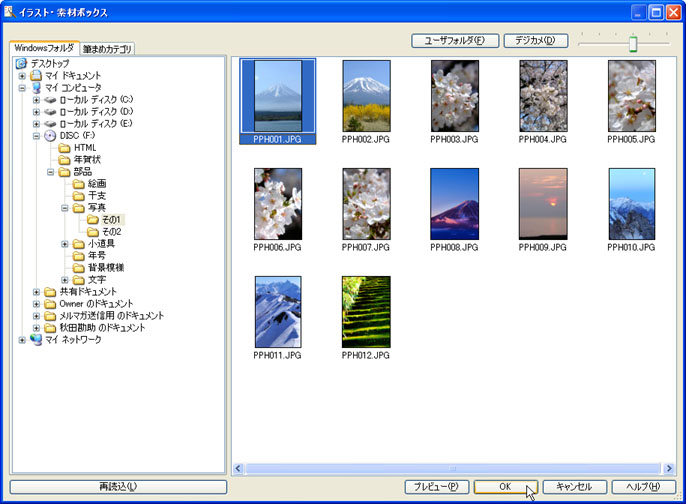 目的の画像を選択し、[OK]ボタンをクリックします。![]() |