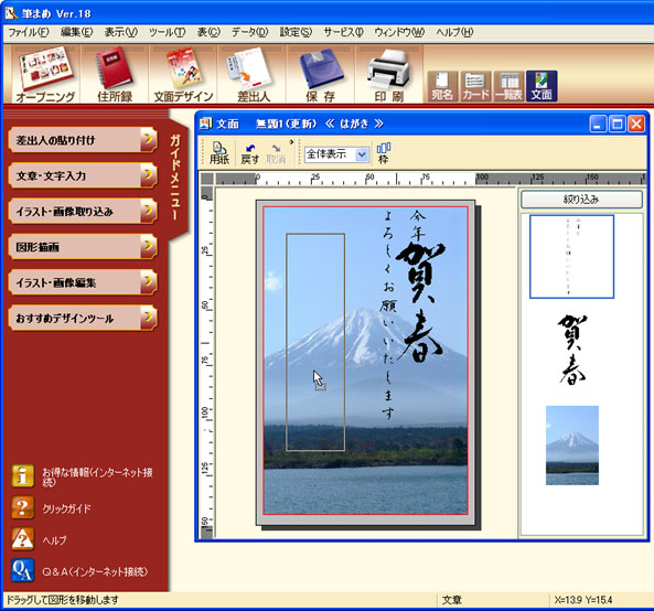 | 「筆まめ Ver.18」を使ってはがきを作成する方法を解説します。