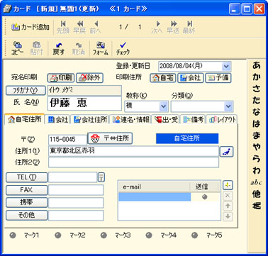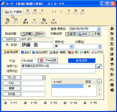 カードウィンドウの[自宅住所]タブをクリックします。 | ||||||||||||||||