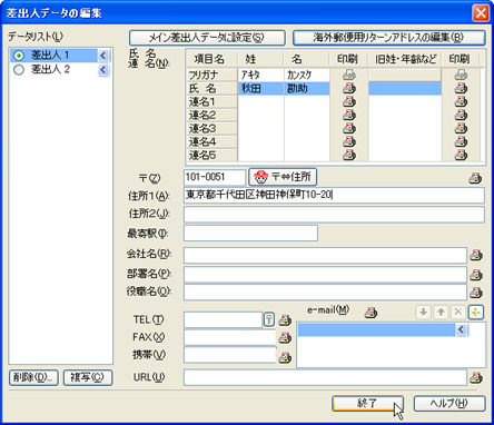 番地を入力し、[終了]ボタンをクリックします。![]() |
