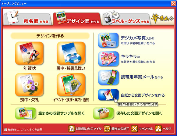 「デザイン面を作る」タブをクリックし、[白紙から文面デザインを作る]をクリックします。![]() |