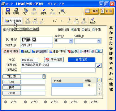 カードウィンドウの[自宅住所]タブをクリックします。 | ||||||||||||||||