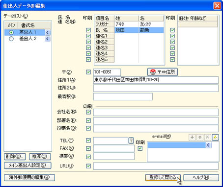 番地を入力し、[登録して閉じる]ボタンをクリックします。![]() |