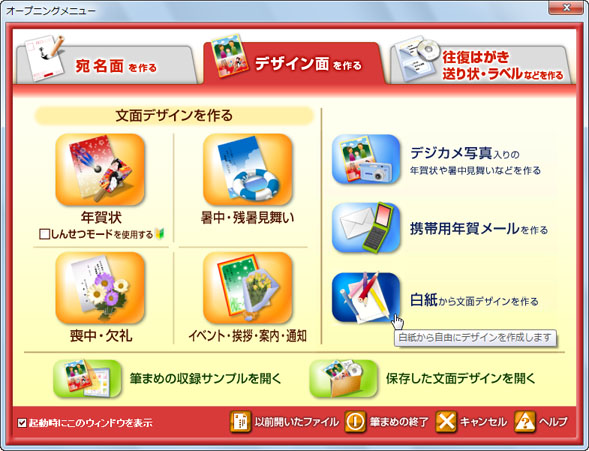「デザイン面を作る」タブをクリックし、[白紙から文面デザインを作る]をクリックします。![]() |