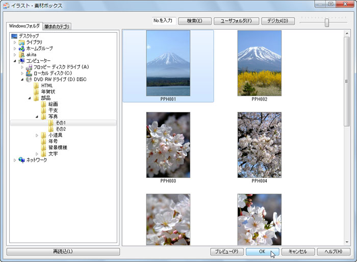 目的の画像を選択し、[OK]ボタンをクリックします。![]() |