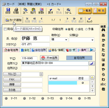 カードウィンドウの[自宅住所]タブをクリックします。 | ||||||||||||||||