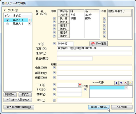 番地を入力し、[登録して閉じる]ボタンをクリックします。![]() |