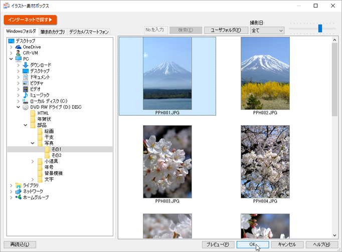 目的の画像を選択し、[OK]ボタンをクリックします。![]() |
