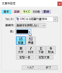 [縦書]ボタンをクリックして、文字を入力し、[終了]ボタンをクリックします。![]() |