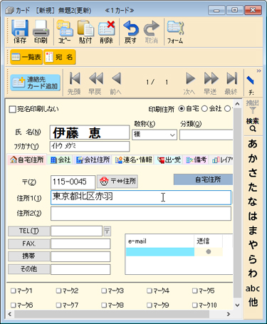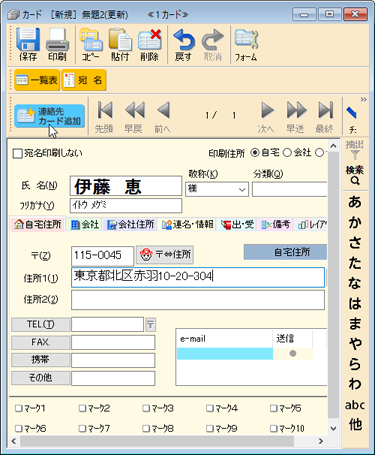 カードウィンドウの[自宅住所]タブをクリックします。 | ||||||||||||||||