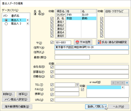 番地を入力し、[登録して閉じる]ボタンをクリックします。![]() |