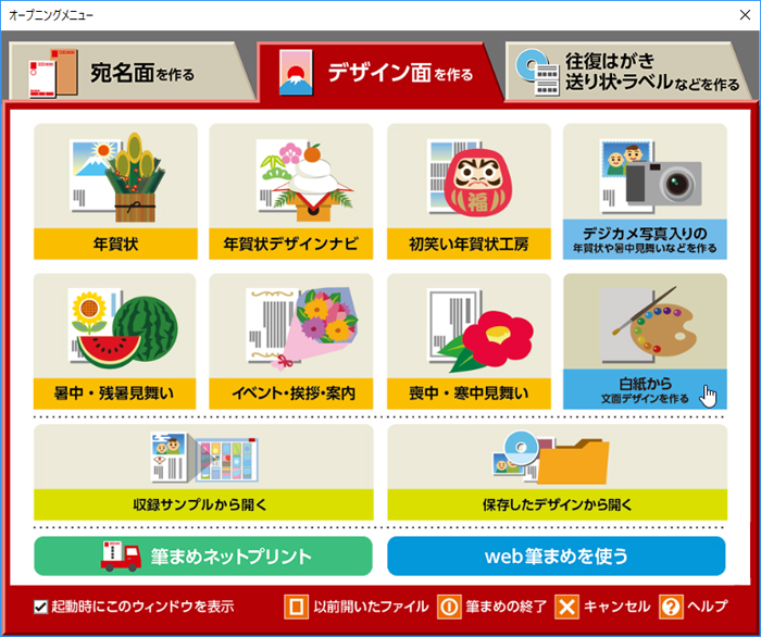 「デザイン面を作る」タブをクリックし、[白紙から文面デザインを作る]をクリックします。![]() |