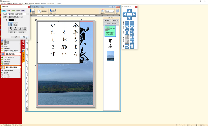 | 貼り付けた画像の上に文字を入力するには、次のように操作します。 | |||||||||||||||||