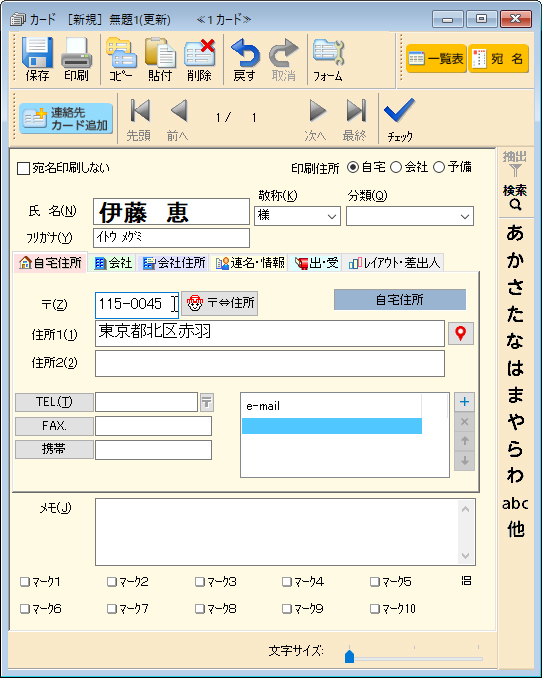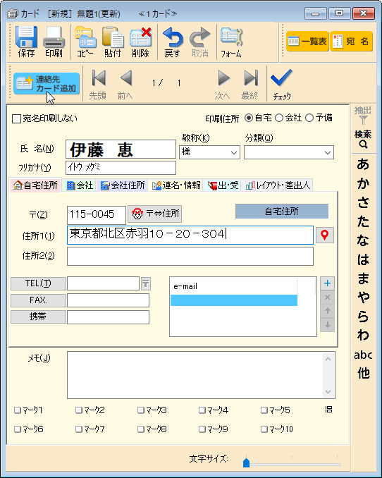 カードウィンドウの[自宅住所]タブをクリックします。 | ||||||||||||||||