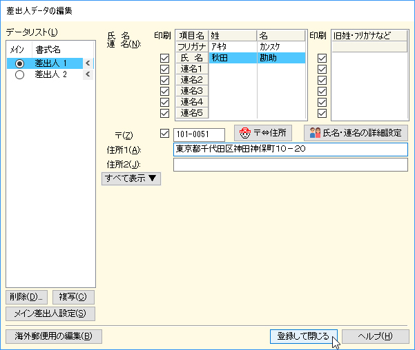 番地を入力し、[登録して閉じる]ボタンをクリックします。![]() |