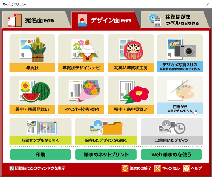 「デザイン面を作る」タブをクリックし、[白紙から文面デザインを作る]をクリックします。![]() |