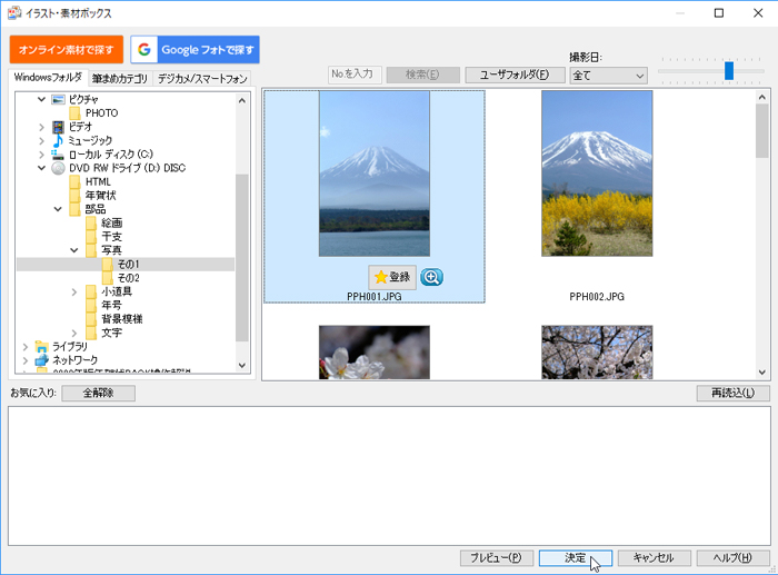 目的の画像を選択し、[決定]ボタンをクリックします。![]() |