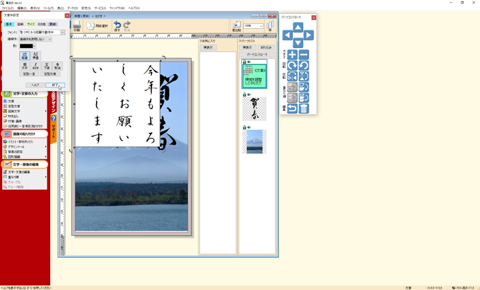 [縦書]ボタンをクリックして、文字を入力し、[終了]ボタンをクリックします。![]() |