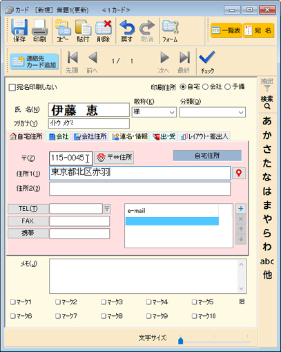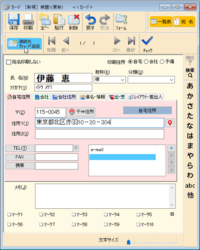 カードウィンドウの[自宅住所]タブをクリックします。 | ||||||||||||||||