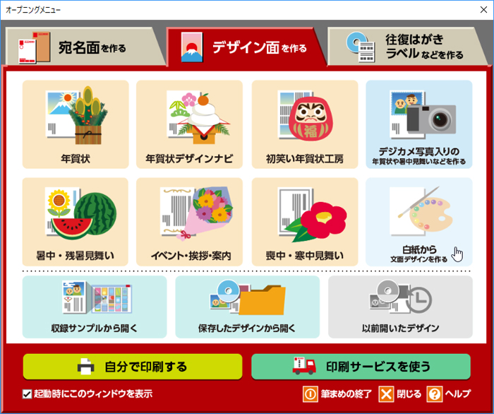 「デザイン面を作る」タブをクリックし、[白紙から文面デザインを作る]をクリックします。![]() |