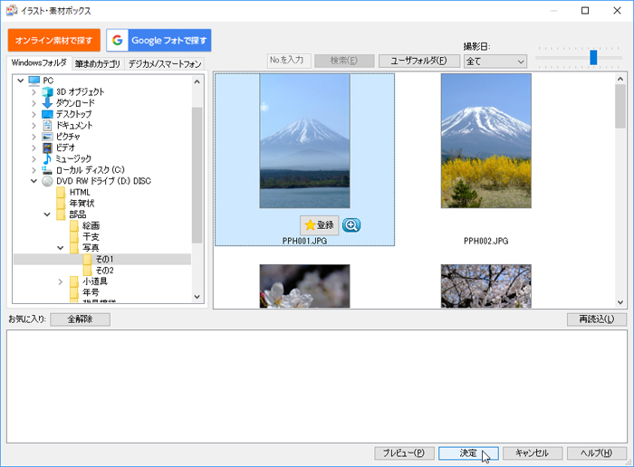 目的の画像を選択し、[決定]ボタンをクリックします。![]() |