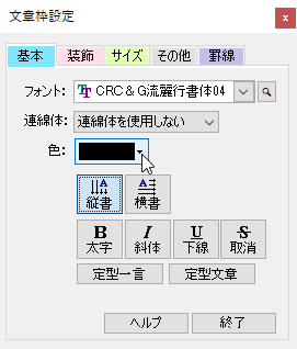 [縦書]ボタンをクリックして、文字を入力し、[終了]ボタンをクリックします。![]() |