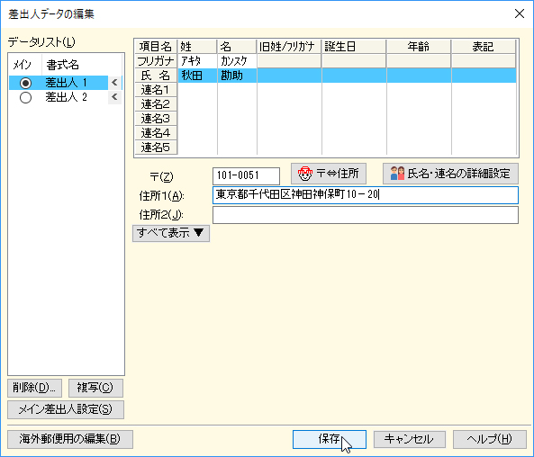 番地を入力し、[保存]ボタンをクリックします。![]() |