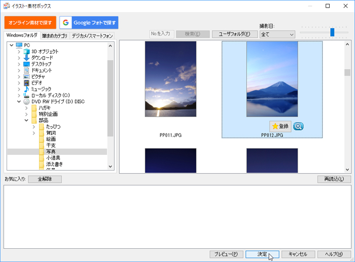 目的の画像を選択し、[決定]ボタンをクリックします。![]() |