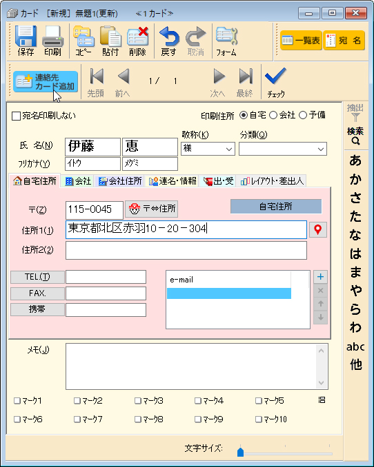 カードウィンドウの[自宅住所]タブをクリックします。 | ||||||||||||||||