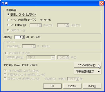 [部数(B)]に印刷部数を入力し、[プリンタの設定(P)]ボタンをクリックします。![]() |
