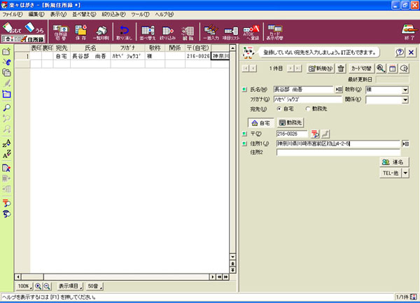 住所録カード画面の[氏名(M)]に氏名を入力します。 | ||||||||||||||||||