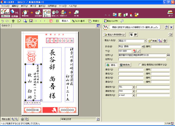 [〒(Z)]に郵便番号を入力すると、自動的に[住所1(J)]に住所が入力されます。 | ||||||||||||||||||