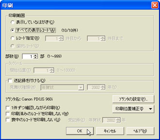 「印刷」ダイアログボックスの[OK]ボタンをクリックします。 | ||||||||||||||||||