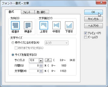[縦書き]または[横書き]ボタンをクリックし、[文章枠を追加]ボタンをクリックします。![]() |