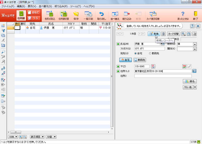 コマンドバーの[住所録]ボタンをクリックします。 | ||||||||||||||||||