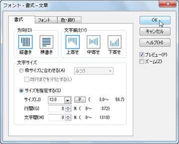[文章(B)]欄に文字を入力します。 | ||||||||||||||||||