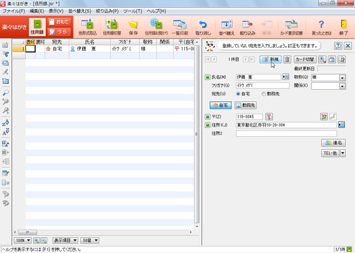 コマンドバーの[住所録]ボタンをクリックします。 | ||||||||||||||||||