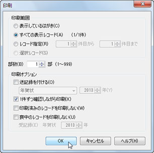 [部数(B)]に印刷部数を入力し、[OK]ボタンをクリックします。 | ||||||||||||||||||