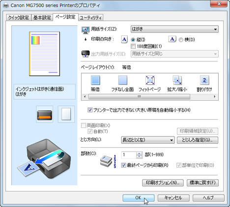 設定画面で「はがき」タブをクリックします。 | ||||||||||||||||||