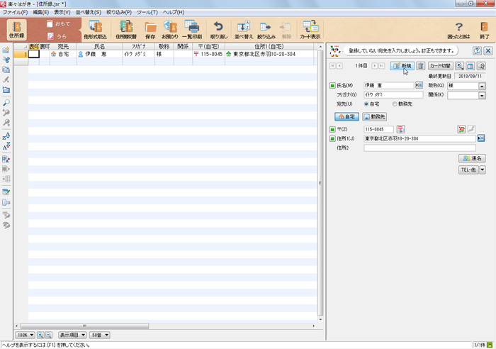 コマンドバーの[住所録]ボタンをクリックします。 | ||||||||||||||||||