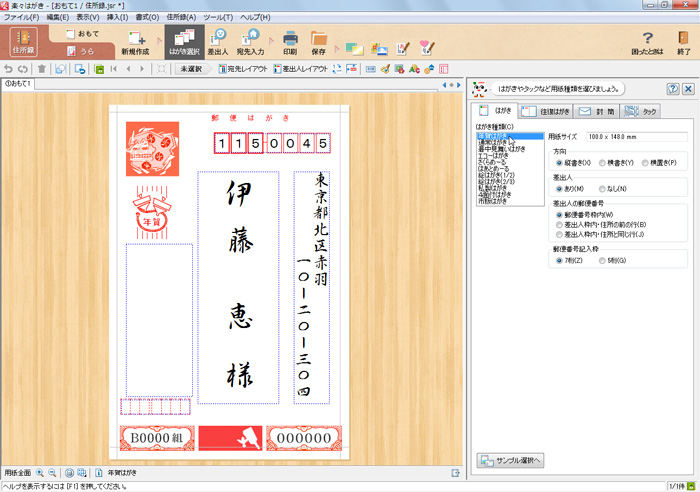 [はがき種類(C)]から「年賀はがき」を選択します。 ※用途に応じて選択してください。 ![]() |