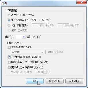 [部数(B)]に印刷部数を入力し、[OK]ボタンをクリックします。 | ||||||||||||||||||