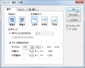 [文章(B)]欄に文字を入力します。 | ||||||||||||||||||