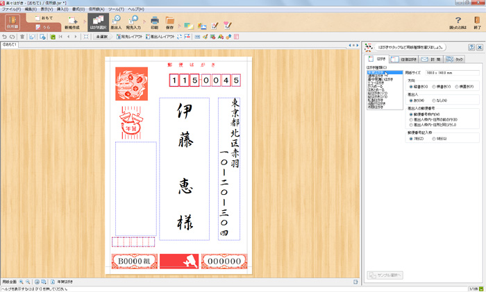 [はがき種類(C)]から「年賀はがき」を選択します。 ※用途に応じて選択してください。 ![]() |